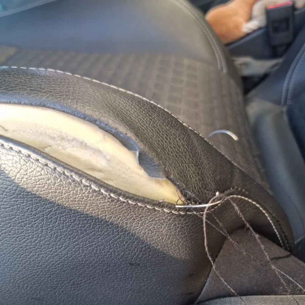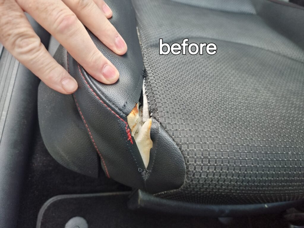 Nearly every single one of us, including me, has owned a vehicle that has rips and tears in the interior. whether it’s in the front or the back seats. I, like many others, spend a lot of time in my car commuting or travelling, so you’re not the only one. And so this is the most common ailment that I see inside vehicle interiors, and I have no problem making this right for your vehicle.